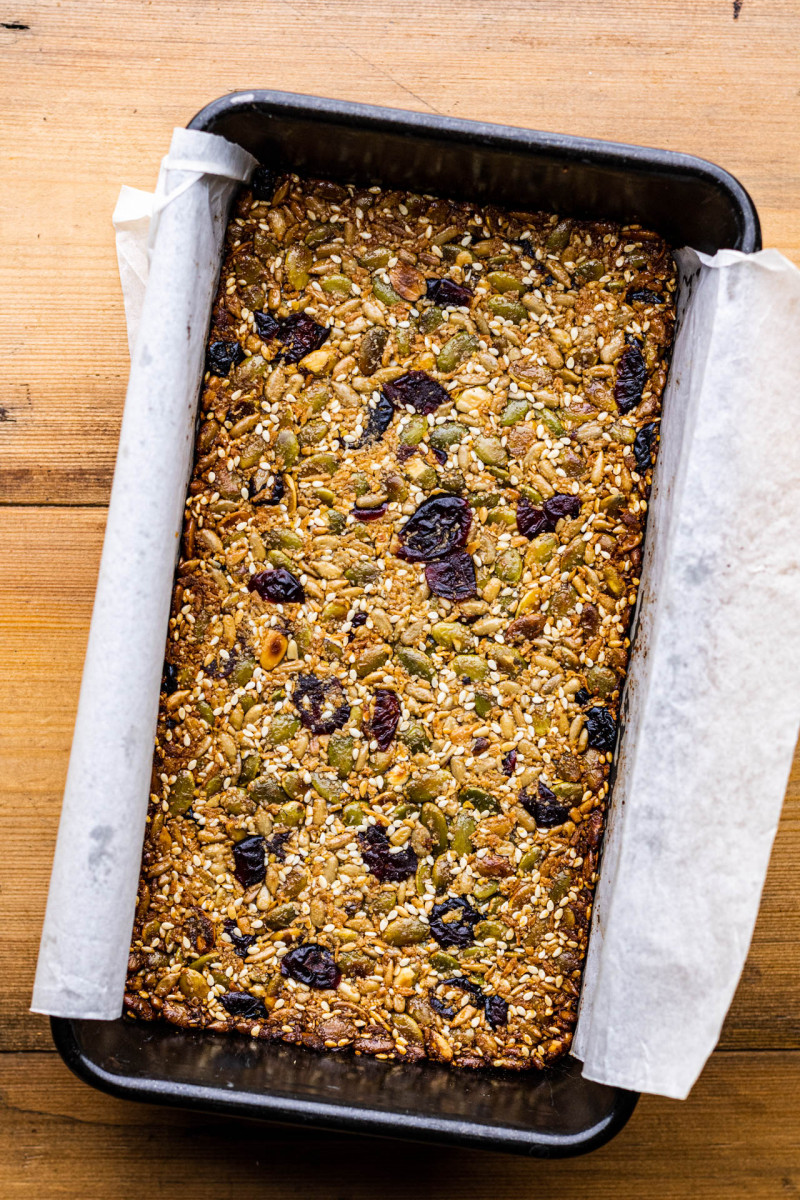 DRIED CRANBERRIES: I used some dried cranberries in these bars for little pops of fruity flavour. I love the contrast between crunchy toasted seeds and slightly sour soft cranberries. If you don’t like cranberries, you could sub them for chopped dried apricots or figs for example.